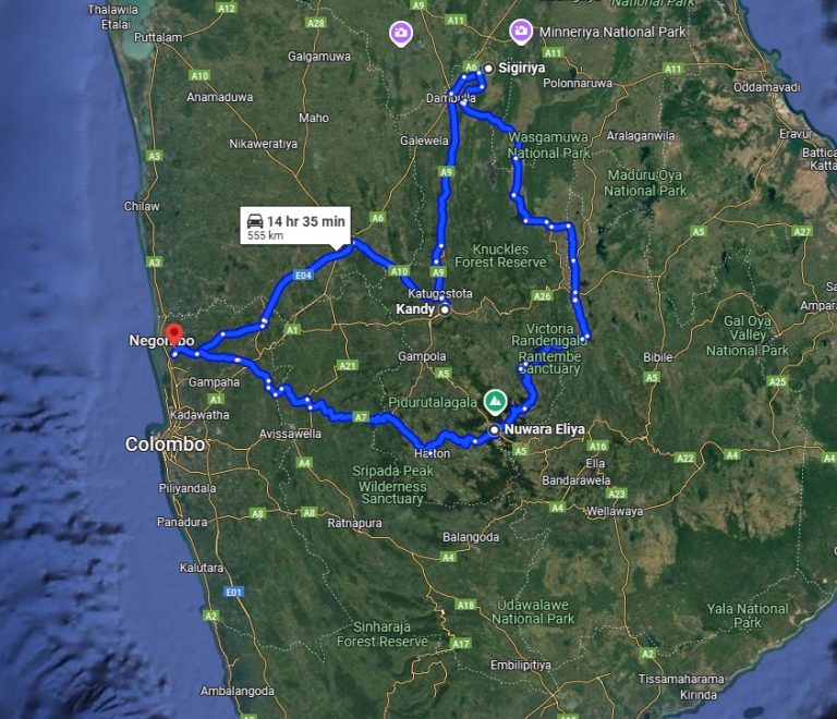 Airport -> Kandy -> Sigiriya -> Kandy ->Nuwara Eliya ->Airport