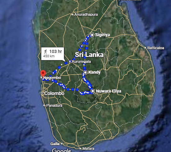 Airport ->Sigiriya -> Kandy->NuwaraEliya ->  Airport