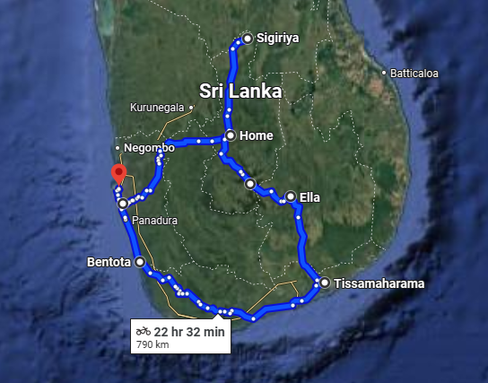 Airport -> Kandy -> Sigiriya -> Kandy ->Nuwara Eliya -> Ella ->Tissamahamara -> Bentota -> Airport